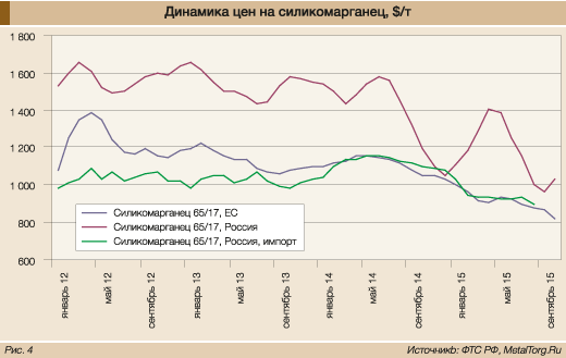 Утверждение корректно, за исключением вопроса о связи поставок украинских ферросплавов со снижением цен – ведь в Европе за тот же период силикомарганец тоже подешевел, причем уже на 8% (рис. 4).