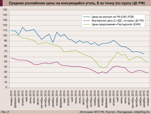 В некоторой степени спад этих поставок компенсировала Украина. За полтора года военного конфликта в Донбассе после обстрелов оказались разрушенными и затопленными более половины местных угольных шахт, а дефицит угля в стране начал быстро нарастать. К примеру, в январе 2016 года добыча энергетического и коксующегося угля на Украине снизилась (в годовом сравнении) в 3 раза – с 3,420 млн до 1,130 млн т. Причем добыча его, потребление и импорт недостающих объемов (из России, ЮАР, Австралии) являются сейчас крайне нестабильными. Но большая часть коксующихся углей для украинской металлургии по-прежнему импортируется из России.
