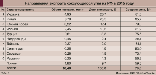 Впрочем, и им весьма далеко до типовых цен выгодных экспортных поставок российского коксующегося угля. За 2015 год они осуществлялись из РФ в 41 страну мира, однако в этих закупках есть и явные лидеры (см. табл. 1).