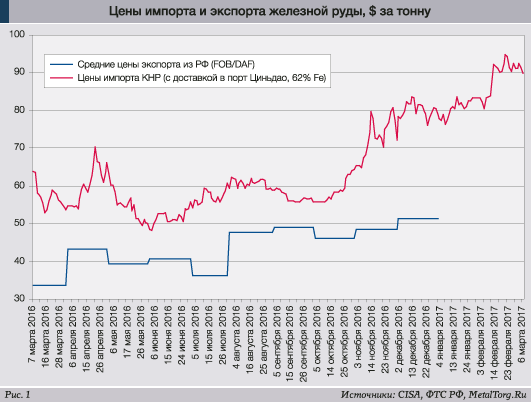 «Металлоинвест» отметил, что в 2016 году доля российских поставок ЖРС снизилась до 61% (против 66% годом ранее) за счет роста экспорта ряду стран ЕС. Но для избыточного российского рынка эта тенденция несущественна. Тем более что суммарный объем экспорта железной руды из РФ за 2016 год снизился на 12,7%, до 18,54 млн т.