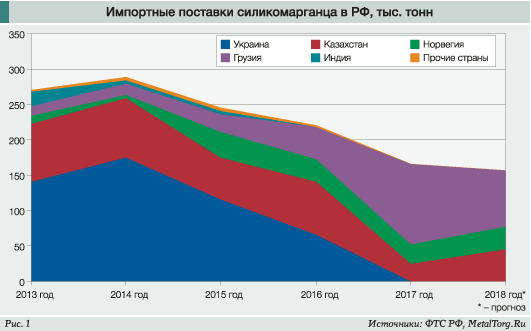 Впрочем, распалась ли она сейчас – тоже вопрос открытый. Импорт силикомарганца в Россию за последние годы заметно сократился и изменился по структуре (рис. 1), но на то было сразу несколько причин.