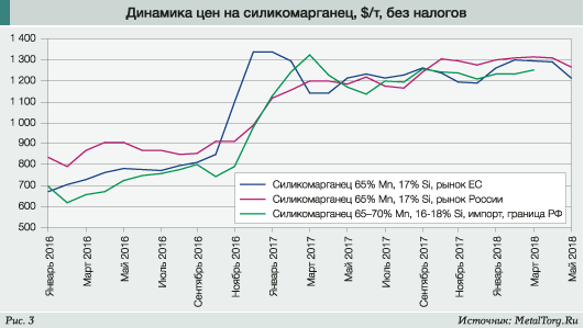 В целом перспективы рынка достаточно оптимистичны. С начала 2017 года цены силикомарганца держатся на достаточно высоких уровнях (рис. 3), и говорить об их быстром снижении пока никто не рискует.