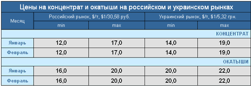 На украинском рынке после январского снижения цен в феврале цены не менялись. На украинском рынке железорудного сырья наблюдается ситуация неустойчивого равновесия. Горняков интересует вопрос о ценах – «куда ниже?», металлургов же тревожит проблема качества – «куда хуже?».