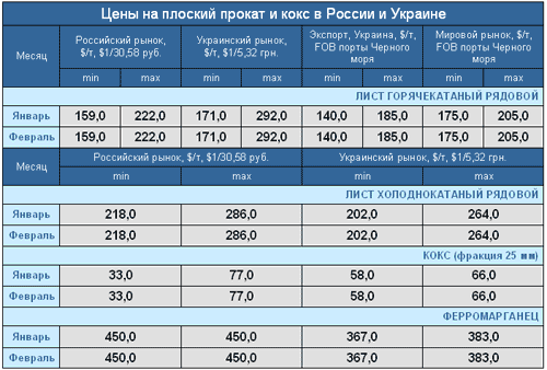На мировом рынке цены в феврале повышались, что связано, в основном, с высоким спросом со сто-роны покупателей из Китая, Юго-Восточной Азии и Ближнего Востока. Цены на тонколистовую сталь произ-водства СНГ поднялись в среднем на 10-15 $/т. Основные производители листовой стали Европы и Север-ной Америки планируют и дальше повышать цены, ориентируясь на оживление спроса. Однако на рынках еще сохраняются достаточные запасы продукции, что ставит под сомнение успешность этих попыток.
