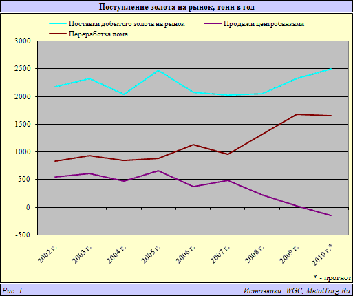 Однако уже второй год увеличение поступлений лома компенсируется деятельностью центробанков, которые активно сокращают количество распродаваемого металла из запасов, а с весны 2009 г. и вовсе перешли на закупки.