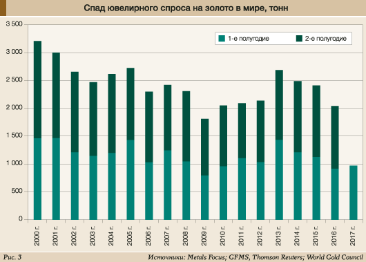 WGC отмечает в первой половине этого года ослабление долговременной тенденции по «изменению моды» и снижению спроса на золото со стороны ювелиров (рис. 3).