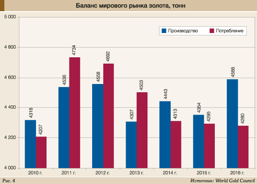 Баланс производства и потребления золота у WGC в последние 3 года складывается не в пользу горняков (рис. 4).