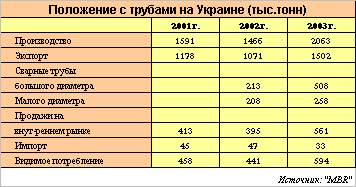 В 2003 г. наблюдался существенный рост экспорта труб из Украины - на 40,2% - до 1,5 млн. тонн, в том числе сварных труб большого диаметра - на 140% - до 508 тыс. тонн. Украинские продуценты труб намерены продолжать расширять их экспорт. С целью снижения издержек производства некоторые из них закупают в России горячекатаную рулонную сталь более дешевую, чем у местных МК на Украине. В 2004 г. "Interpipe" (Украина) намерена 1/3 объема экспорта труб направлять в страны Европы.