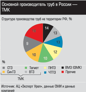 Основные российские производители труб большого диаметра (ТБД) - Челябинский трубопрокатный завод (ЧТПЗ, входит в группу ЧТПЗ), Выксунский металлургический (ВМЗ, входит в Объединенную металлургическую компанию) и Волжский трубопрокатный (ВТЗ, входит в Трубную металлургическую компанию) заводы. Серьезную конкуренцию им составляют украинские производители, а также трубники Германии и Японии. По данным группы ЧТПЗ, в 2004 году произошло снижение потребления ТБД (на 4,6%) на внутреннем рынке. Вместе с тем наблюдался существенный рост импорта (16,6%), который обусловлен прежде всего реализацией нефтегазовых проектов на Сахалине. Продукцию для них поставляли японские производители и ВМЗ. Проекты осуществляются на условиях соглашения о разделе продукции, и 70% закупок должно приходиться на отечественных производителей. Между тем интересы российских трубников оказались ущемлены. В этой связи снижение объемов поставок ТБД на внутренний рынок (от 10 до 20%) наблюдалось у всех трех российских производителей.