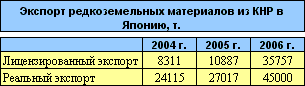 Несмотря на принимаемые меры, в прошлые годы вывоз сырьевых редкоземельных материалов из КНР существенно превышал лицензированные объемы, в частности, их экспорт в Японию характеризовался следующими данными (т):