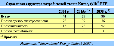 Согласно прогнозу "EIA", в 2030 г. по сравнению с 2004 г. мировое потребление угля увеличится примерно на 74%. В 2004 -2015 г.г. ежегодный прирост потребления угля в среднем составит 2,6%, в период с 2015 г. по 2030 г. - 1,8%, что будет вызвано ожидаемым замедлением темпов экономического развития г.осударств Азиатско-Тихоокеанского региона (АТР) и развивающихся стран после 2015 г. В 2030 г. по сравнению с 2005 г. международная угольная торговля вырастет на 44%.