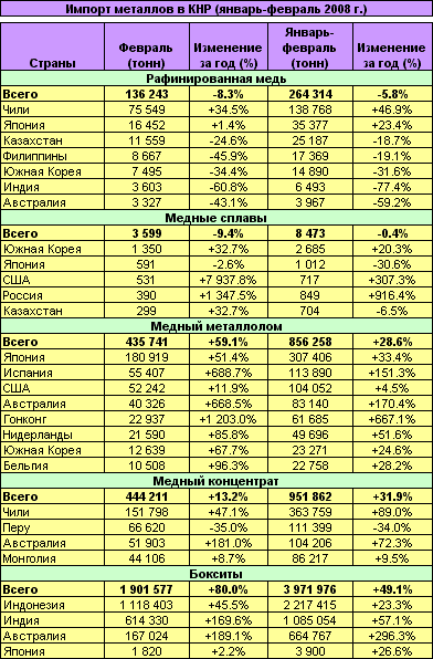 | Статистика внешней торговли КНР цветными металлами в январе-феврале 2008г. (Импорт) | ![]() |