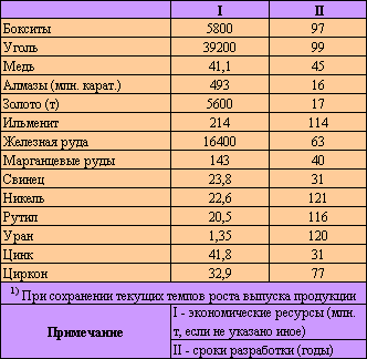 Австралия является мировым лидером по объему идентифицированных, но не разрабатываемых природных ресурсов различных видов минерального сырья. Согласно данным "Mining Journal", экономические ресурсы минералов в Австралии и перспективные сроки их разработки характеризуются следующими данными: