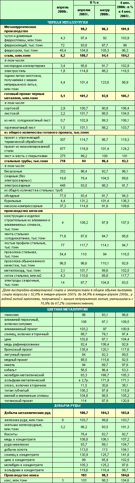 | Статистика производства в ГМК РФ за 4 месяца 2008 года | ![]() |