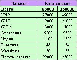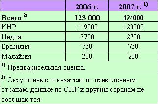 В целом, по предварительным данным Геологической службы США, мировая добыча редких земель в 2007 г. составила 124,0 тыс. т в пересчете на РЗО, а ее географическая структура характеризовалась следующими данными (т РЗО):