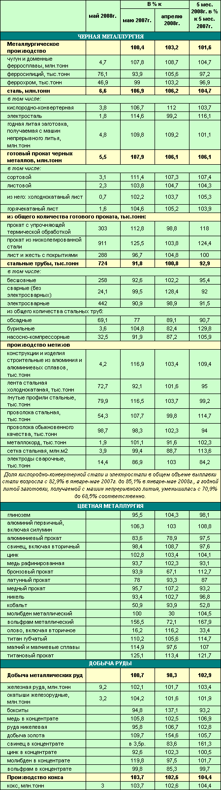 | Статистика производства в ГМК РФ за 5 месяцев 2008 года | ![]() |