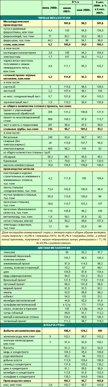 | Статистика производства в ГМК РФ за I полугодие 2008 года | ![]() |