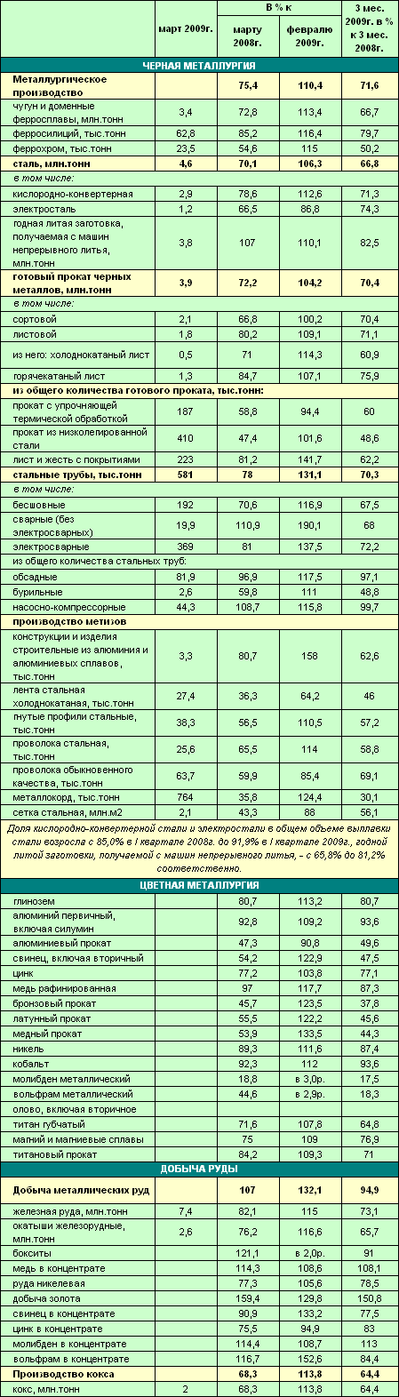 | Статистика производства в ГМК РФ за 3 месяца 2009 года | ![]() |