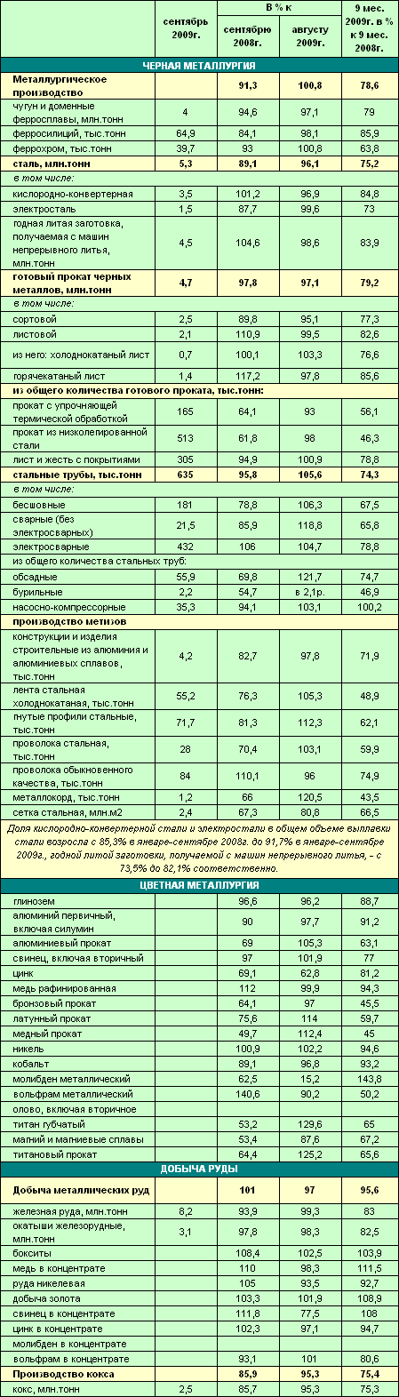 | Статистика производства в ГМК РФ за 9 месяцев 2009 года | ![]() |