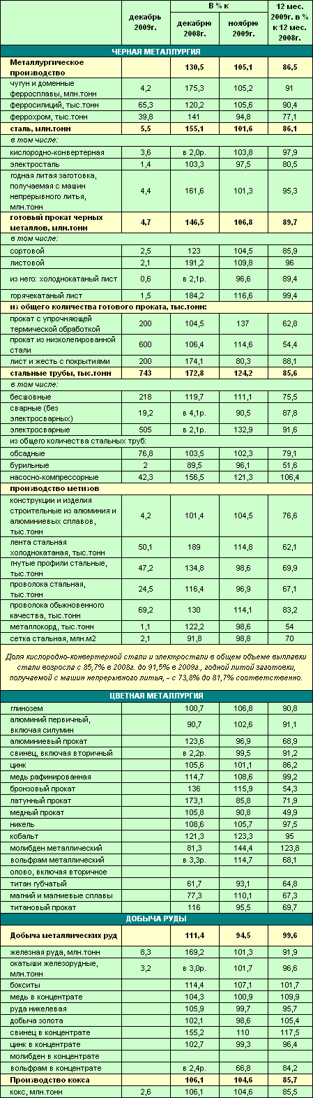 | Статистика производства в ГМК РФ за 12 месяцев 2009 года | ![]() |