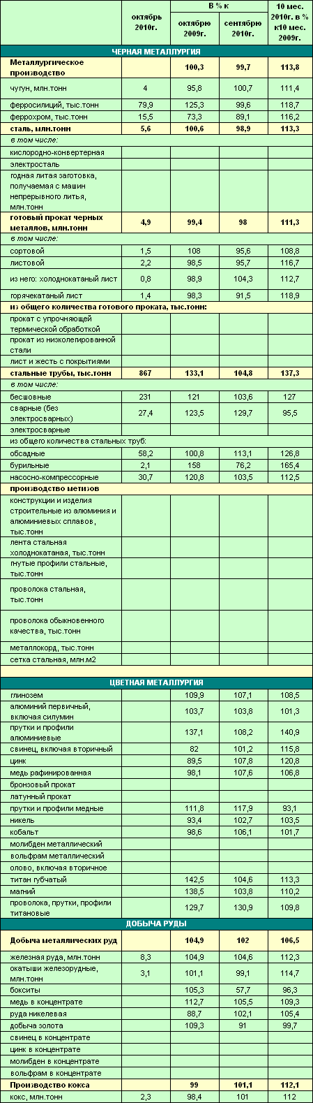 | Статистика производства в ГМК РФ за 10 месяцев 2010 года | ![]() |