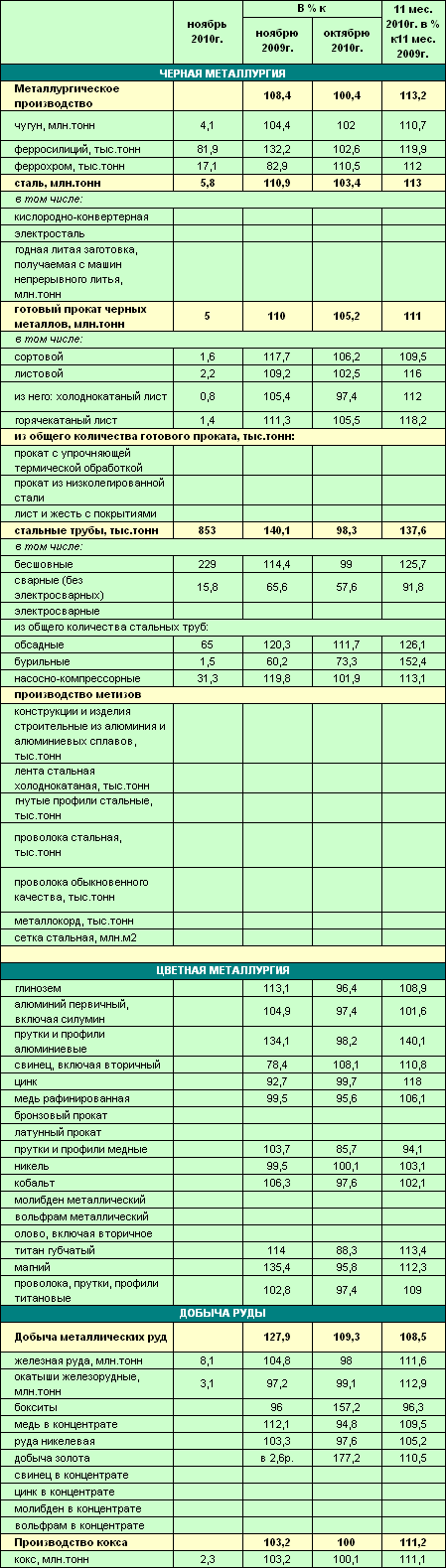 | Статистика производства в ГМК РФ за 11 месяцев 2010 года | ![]() |