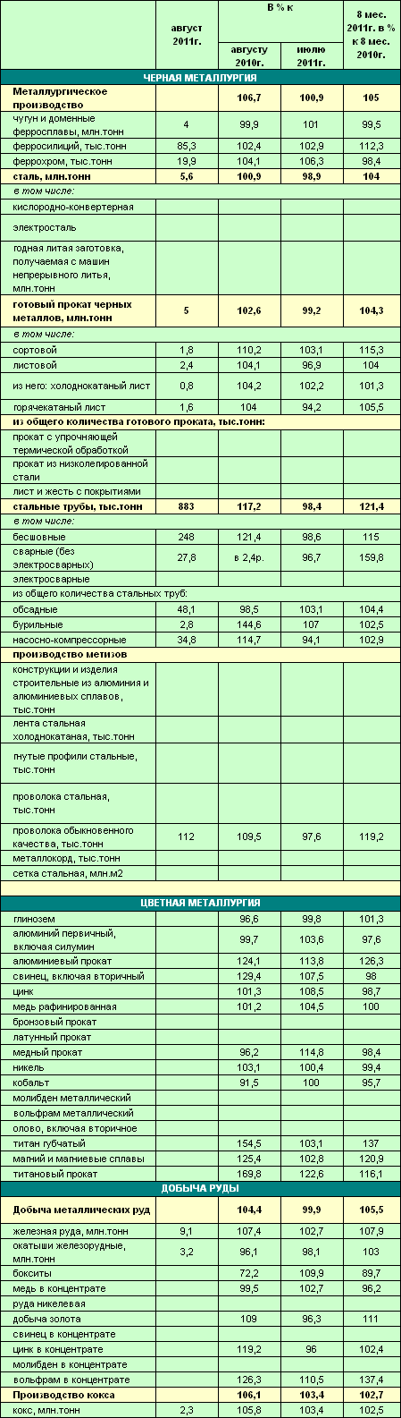 | Статистика производства в ГМК РФ за 8 месяцев 2011 года | ![]() |