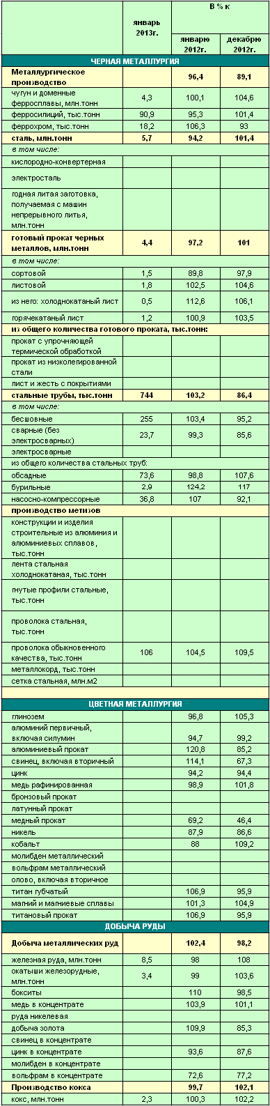 | Статистика производства в ГМК РФ за 1 месяц 2013 года | ![]() |