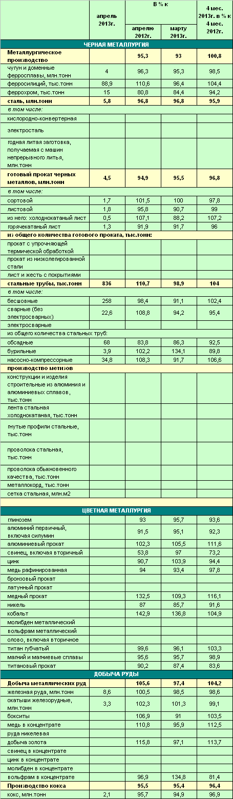 | Статистика производства в ГМК РФ за 4 месяц 2013 года | ![]() |