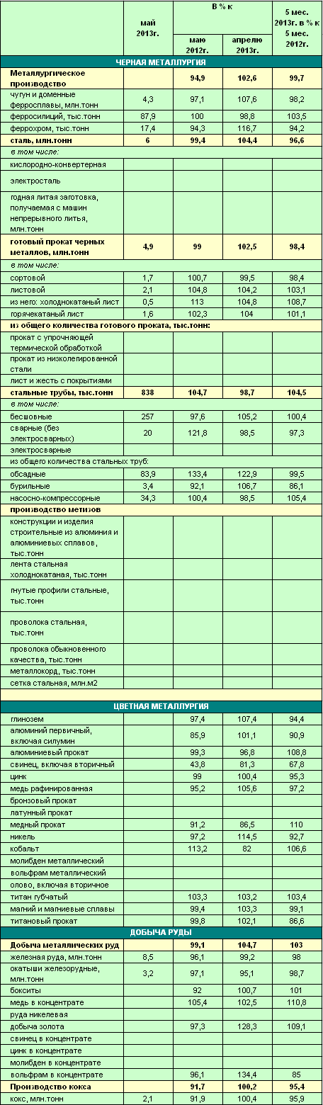 | Статистика производства в ГМК РФ за 5 месяц 2013 года | ![]() |