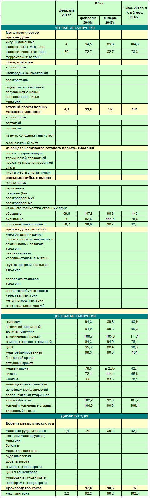 | Статистика производства в ГМК РФ за 2 месяца 2017 года | ![]() |