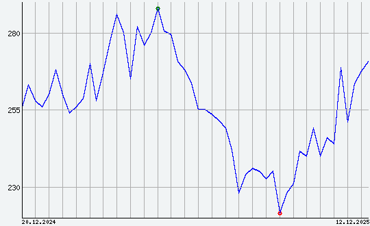 | Дата | 10.10.25 | 17.10.25 | 24.10.25 | 31.10.25 | 7.11.25 | 14.11.25 | 21.11.25 | 28.11.25 | 5.12.25 | 12.12.25 | | Цена | 27115.0 | 25820.0 | 26538.0 | 25828.0 | 26386.0 | 27027.0 | 26914.0 | 26918.0 | 26700.0 | 26875.0 |