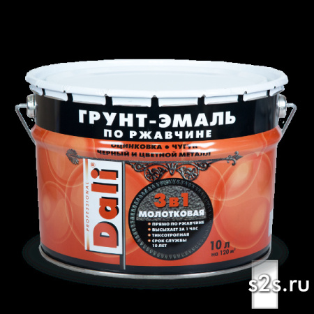 Грунт-эмаль по ржавчине 3 в 1 с молотковым эффектом DALI® 10 литров