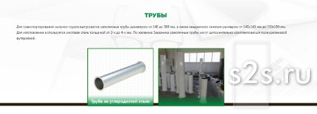 Для транспортирования сыпучих грузов выпускаются самотечные трубы диаметром от 140 до 380 мм, а также квадратного сечения размером от 140x140 мм до 350x350 мм.