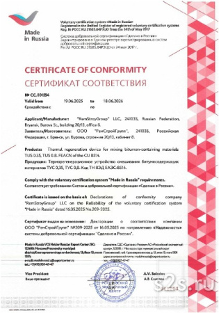 Терморегенерационное устройство смешивания битумосодержащих материалов ТУС 0,35 – 2шт.