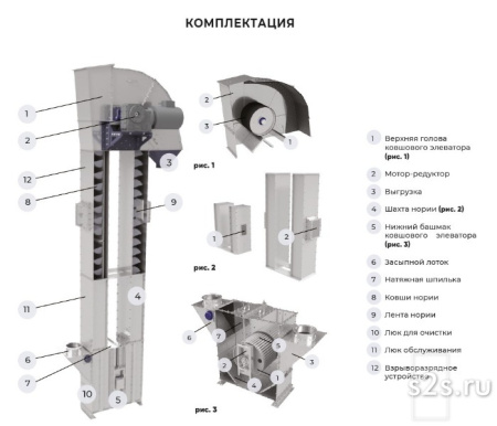 Ковшовые элеваторы (нории) поставляются в различных конфигурациях в зависимости от нужд предприятия-заказчика.