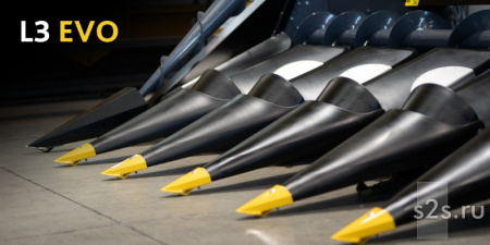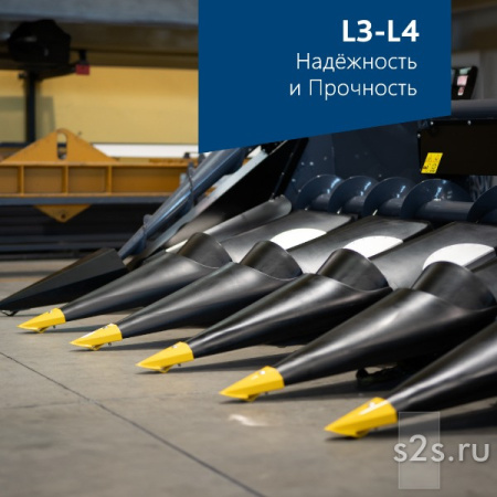Кукурузные жатки серии L4 отличаются от моделей серии L3 положением измельчителя стеблей, установленного спереди и с правой стороны каждого ряда так, чтобы ометаемая ножами плоскость полностью перекрывала длину валка.